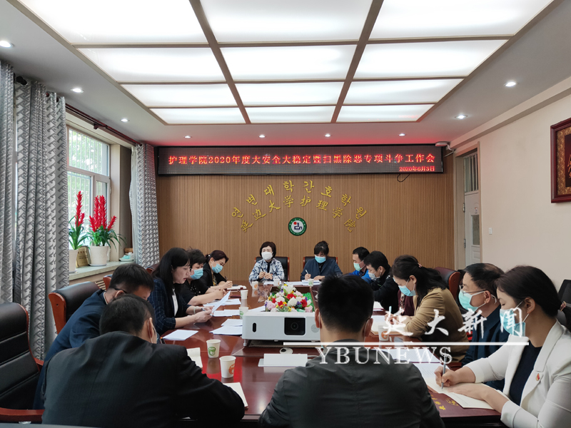 6月3日下午,护理学院在护理楼二楼会议室召开2020年度大安全大稳定暨扫黑除恶专项斗争工作会。学院党委书记金鸿雁、院长崔香淑、副院长崔文香、副书记韩功帅、党委委员、各部门负责人、各支部书记参加了会议。