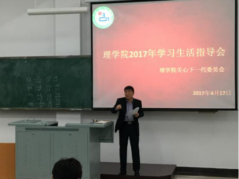 为提升教书育人水平,指导2016级少数民族大学生在生活和学习中遇到的各种问题,4月17日下午,理学院关工委在西部教学楼203教室开展了主题为“倡民族共进,解学生之惑”2016级少数民族大学生生活指导会。学院关工委主任李哲奎主讲。