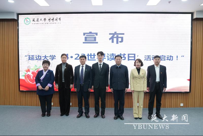 与会领导、嘉宾及学生代表共同宣布2024年“世界读书日”活动启动;图书馆馆长崔香淑宣读“世界读书日倡议书”。