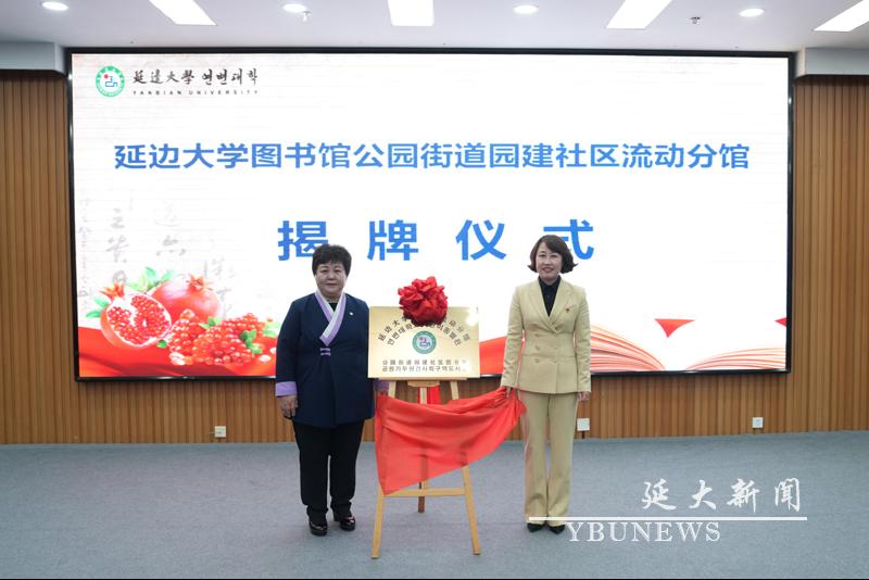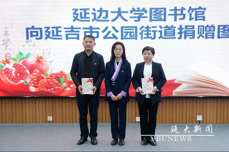 仪式上,吉林省新华书店集团延吉市有限责任公司向金沙官网学生捐赠10万元“惠民购书卡”,校党委学生工作部部长林雪梅代表学校接受捐赠;崔香淑与延吉市公园街道党工委书记金美花共同为“js6668金沙登录入口图书馆公园街道园建社区流动分馆”揭牌;图书馆党总支书记李爱丹代表图书馆向社区捐赠图书;学校出版社、珲春市档案馆分别向金沙官网图书馆捐赠图书和地方志。