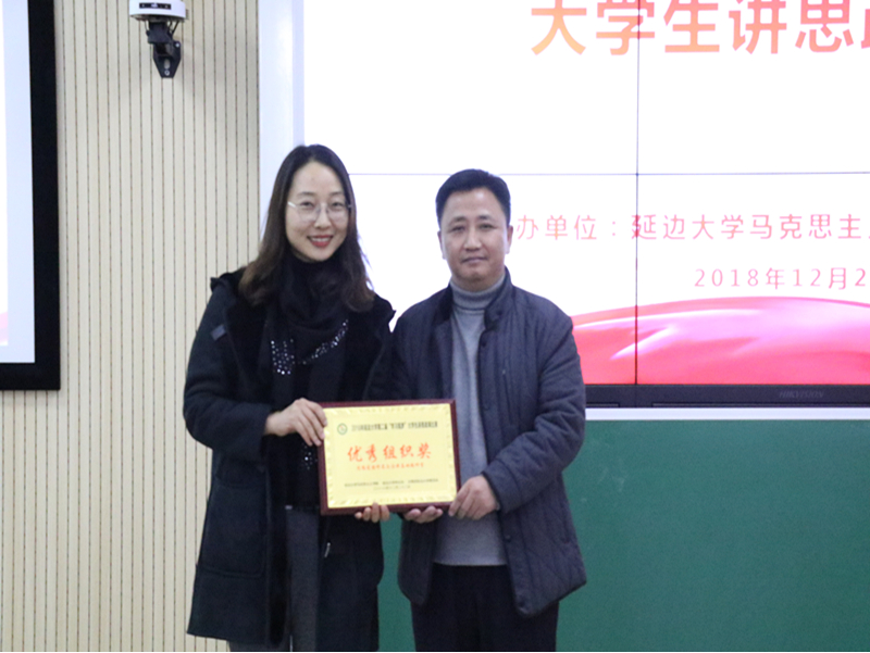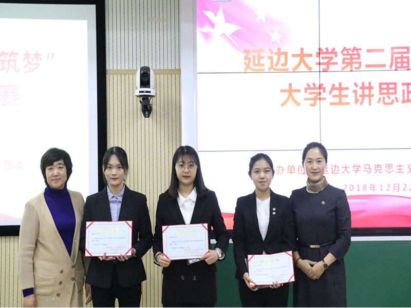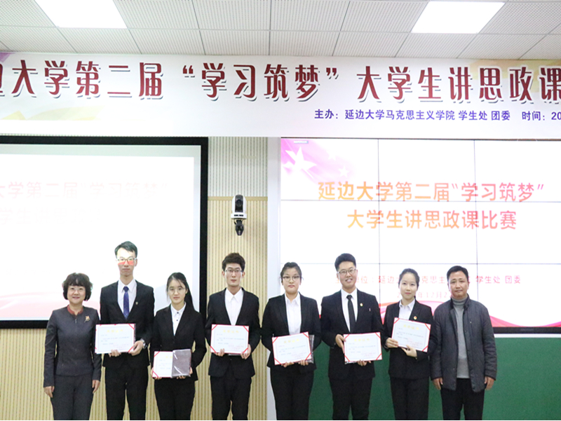 本届比赛历时一个多月,采取自愿报名的方式,通过初赛和复赛,评选出9名选手进入决赛。经过精心准备,决赛中每一位参赛选手都为在场师生讲授了一堂主题鲜明、形式新颖、感染力强的思政课,生动展现了金沙官网大学生的理论素养和精神风貌,展示了大学生对思政课的美好畅想,切实增强了大学生对思政课的获得感。经过激烈的角逐,最终由基础教研室邵希芸老师指导的珲春校区理学院闫俊琪团队、原理教研室孟祥鹏老师指导的朝汉文学院莫凯悦团队、概论教研室金松兰老师指导的经济管理学院马元森团队并列获得本次比赛一等奖。理学院王灿然、人文社会科学学院陈朝霞、师范学院王楠、药学院韩旭、珲春校区理学院王丽博、经济管理学院孙佳伟等6个团队获得二等奖。基础教研室获得优秀组织奖。与会领导为获奖个人和团体进行了颁奖。