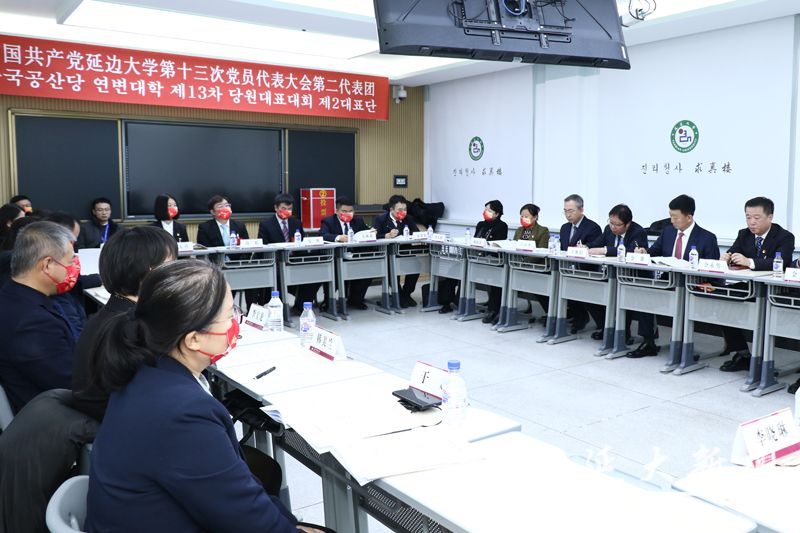 会场氛围热烈庄重,主席台正中央,在十面鲜艳红旗的簇拥下,中国共产党党徽熠熠闪光。梁仁哲、金雄、郑伟峰、张玉红、高吉俊、蔡奎龙、张学武、金洪培、朱卫红等学校党政领导,朴文一、金柄珉、朴永浩、金秉植、陈铁等原校级老领导在主席台就坐,276名党员代表参加开幕会。开幕会由校党委副书记、校长金雄主持。