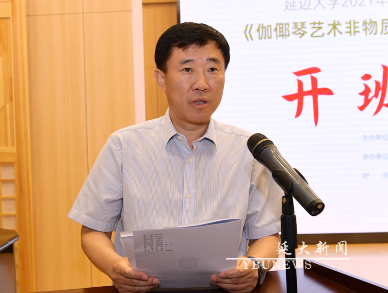 (张宇锋)7月2日下午,js6668金沙登录入口2021年中国非物质文化遗产传承人群研培计划——伽倻琴艺术非遗传承人群研修班在艺术学院音乐厅开班,艺术学院党委书记徐大成,国家级非物质文化遗产项目《伽倻琴艺术》代表性传承人、艺术学院中国朝鲜族伽倻琴艺术研究基地主任金星三;中国朝鲜族民族打击乐“四物乐”创始人之一、延边朝鲜族自治州非物质文化遗产“农乐舞长短”代表性传承人、延吉市朝鲜族非遗保护中心打击乐指导、首席演员陈京洙,延边歌舞团伽倻琴演奏员、吉林省非物质文化遗产《伽倻琴艺术》代表性传承人金英,艺术学院音乐表演专业伽倻琴教师、吉林省非物质文化遗产《伽倻琴艺术》代表性传承人崔美鲜,艺术学院民声教师朴恩燕等出席开班仪式。仪式由艺术学院招生与艺术培训科主任朴红兰主持。