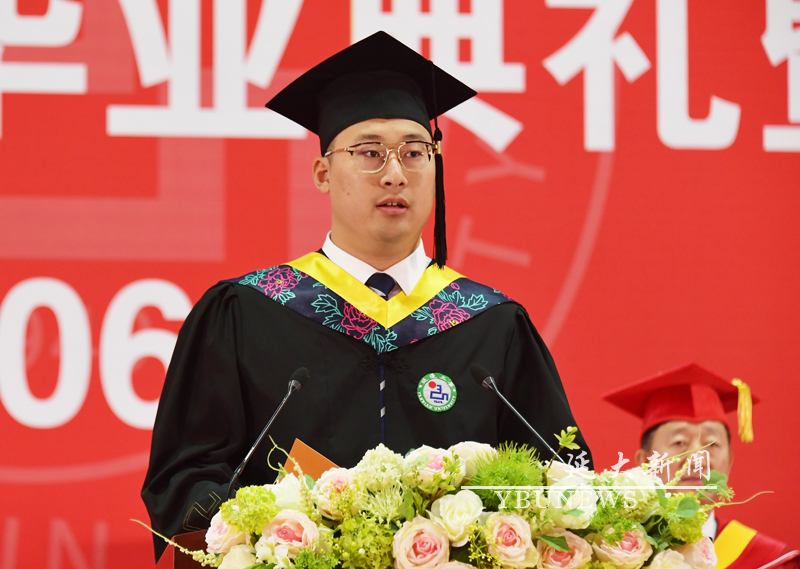 毕业生代表工学院计算机科学与技术专业周莫寒同学发言。他深情回顾了四年求学生活,分享了在js6668金沙登录入口成长成才的经历。他表示,四年的故事已落下帷幕,但崭新的未来才刚刚开始。在未来,他们定会牢记母校“求真、至善、融合”的校训,发扬延大“自强、和合、日新”的校风,将自己的人生与国家、与民族、与延大,永远紧密地联系在一起,共同在实现国内一流、国际知名、特色鲜明的高水平大学的“延大梦”的征程中奋发有为,行稳致远!