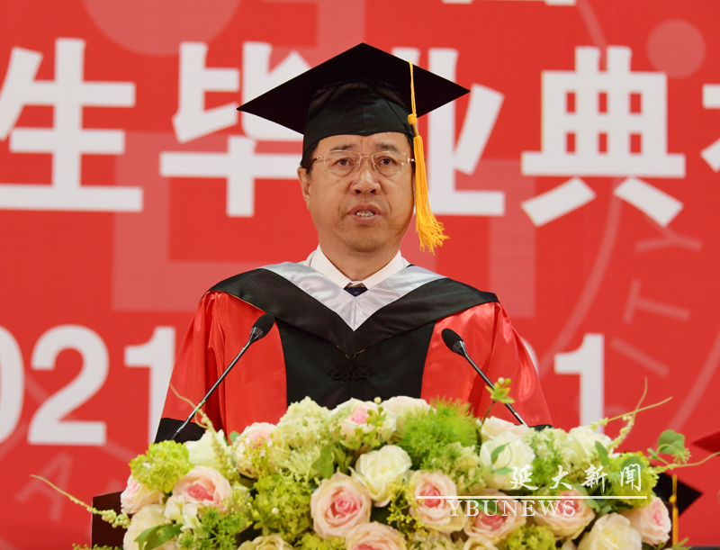 金雄在毕业典礼上寄语毕业生:过去的学习生活中,你们在js6668金沙登录入口留下了难以割舍的青春印记。你们欣喜遇见延大,延大有幸拥有你们!作为亲历“两个一百年”交汇的你们,承载着特殊的历史机遇和光荣的时代使命,既生逢其时,更重任在肩。期待你们在追逐梦想的道路上,都能把握机遇、勇毅笃行。