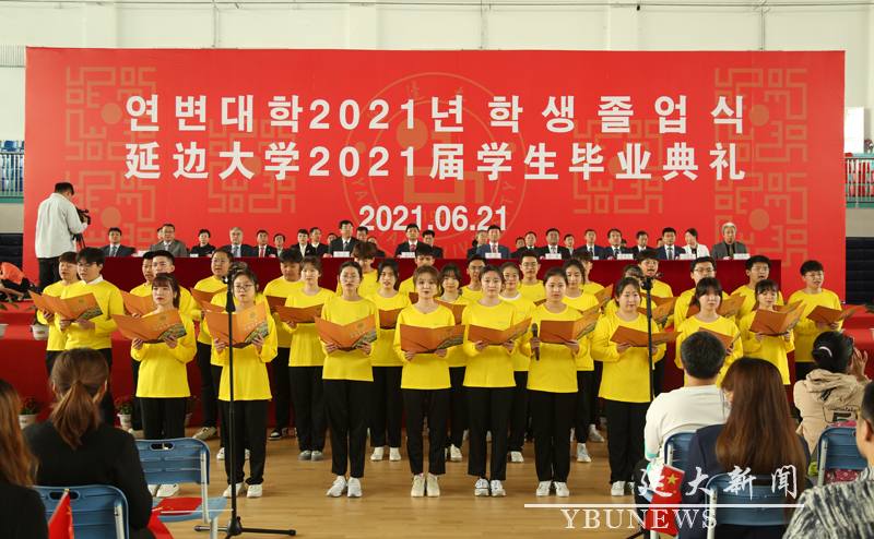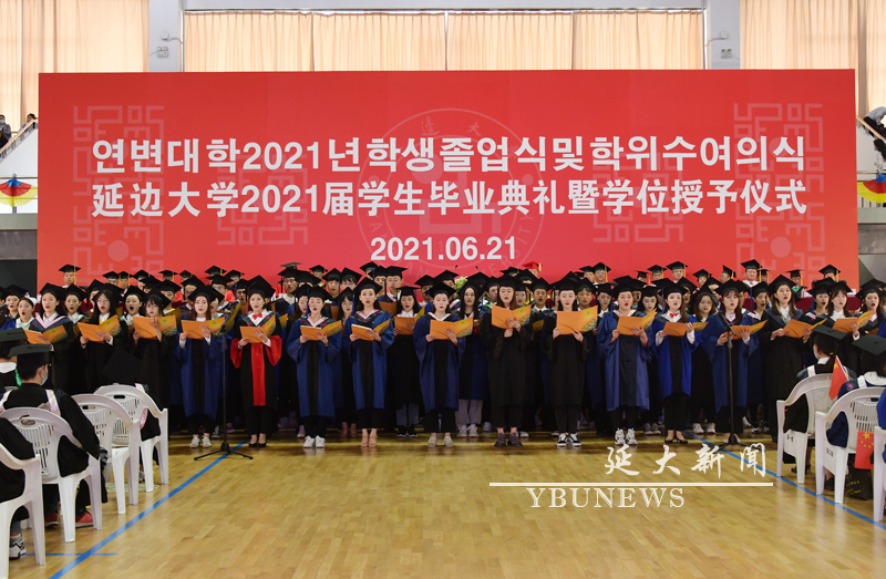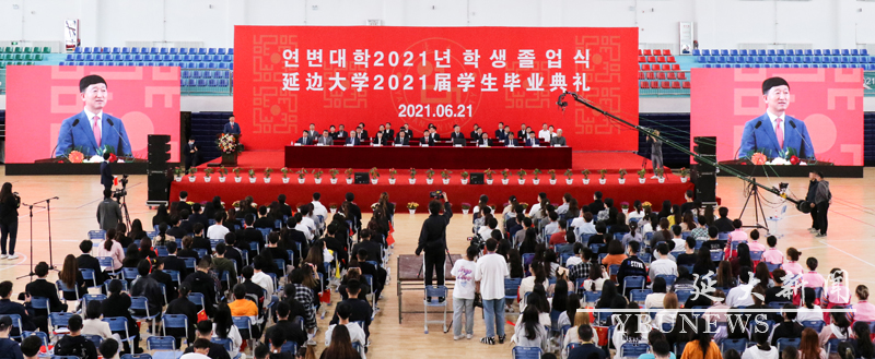 又讯:21日下午,金沙官网在珲春校区行健馆举行2021届学生毕业典礼。校党委书记梁仁哲,校学位评定委员会主席、校长金雄,校学位评定委员会副主席、副校长张寿,校党委副书记陈铁,副校长林哲浩、张玉红及相关学院党政领导、职能部门负责人、教师代表和珲春校区2021届毕业生出席典礼。典礼由张玉红主持,美术学院数字媒体艺术设计专业张浩洋同学代表毕业生发言,金雄在典礼上讲话。