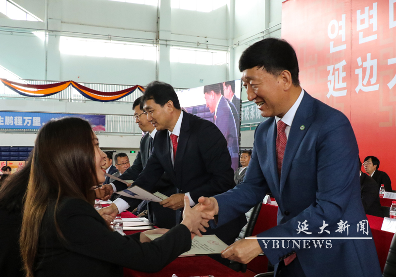 校党委书记梁仁哲等与会领导为毕业生颁发荣誉证书及毕业证书(珲春校区)