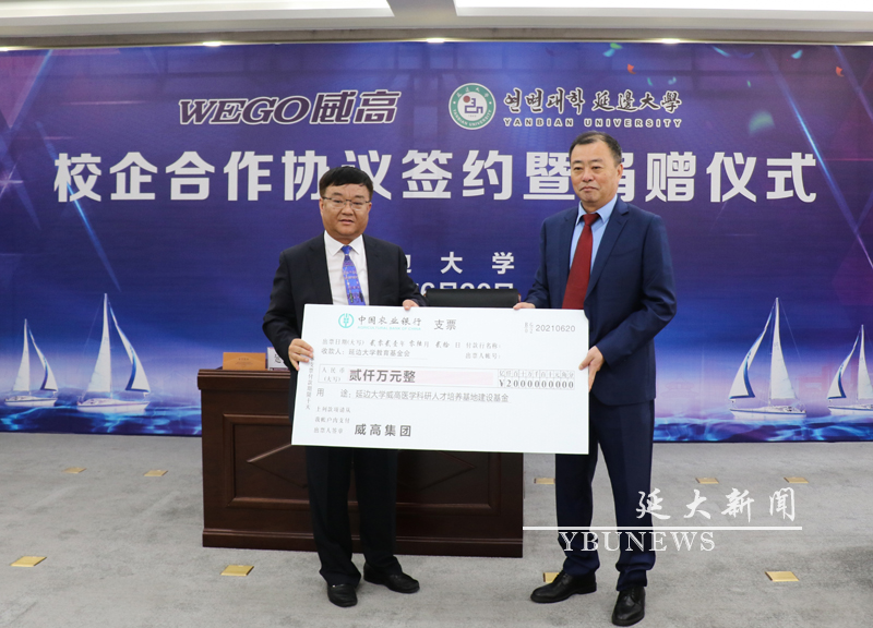 (记者 高子愉)6月20日上午,金沙官网在党政办公楼四楼举行了校企合作协议签约暨捐赠仪式。威高集团创始人陈学利,威高医疗控股公司总裁王毅,威高集团总裁龙经及威高集团相关部门负责人;金沙官网党委书记梁仁哲,校长金雄,校党委副书记陈铁,副校长王延明、张玉红及相关部门负责人参加了仪式。仪式由张玉红主持。