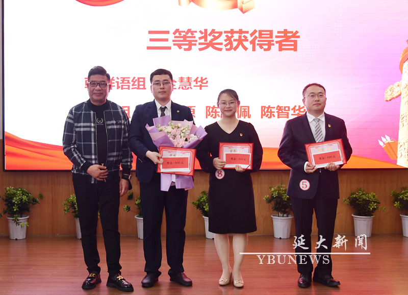 经过激烈角逐,最终,艺术学院崔香花获朝鲜语组一等奖、人文社会科学学院高明文获朝鲜语组二等奖、朝汉文学院全慧华获朝鲜语组三等奖;科学技术学院邵亚光获汉语组一等奖,农学院南力、法学院庄宇获汉语组二等奖,师范学院陈玉佩、医学院张源、护理学院陈智华获汉语组三等奖,人文学院张耀月、经济管理学院于弋扉、药学院陈莹莹、师范学院周阳获汉语组优秀奖。朝鲜语组评委皮寿一、汉语组评委何永贤分别对选手的表现进行了点评。