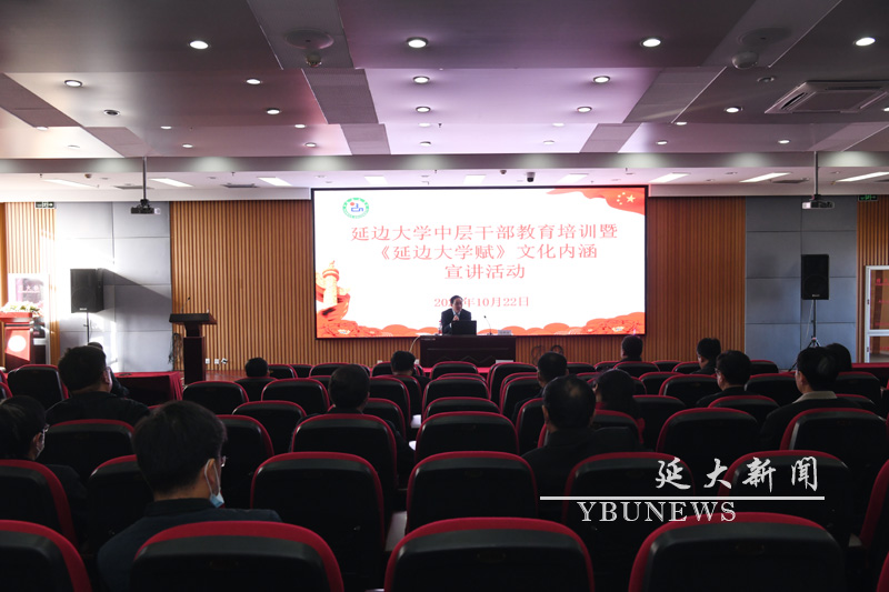 (记者何鑫)为使广大师生熟知学校发展历史,充分发挥文化传承创新的大学功能,不断丰富和积淀大学精神文化,涵育广大师生爱校荣校意识,弘扬学校优良办学传统,传承校训,激发全校师生携手共建特色高水平大学的使命感和责任感。10月22日下午,金沙官网在科技图书馆8楼学术报告厅开展全校中层干部教育培训暨《js6668金沙登录入口赋》文化内涵宣讲活动,学校副处级以上领导干部参加活动,活动由校党委宣传部副部长南铉国主持。