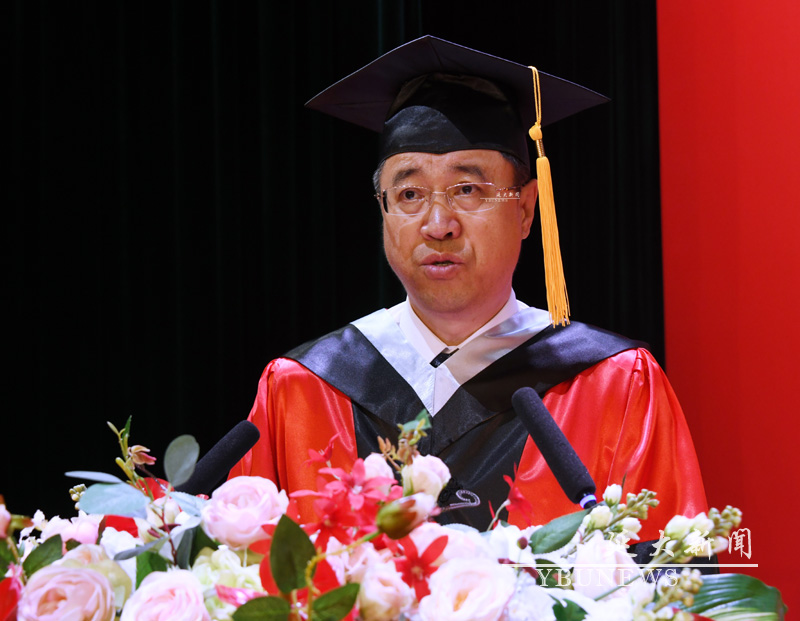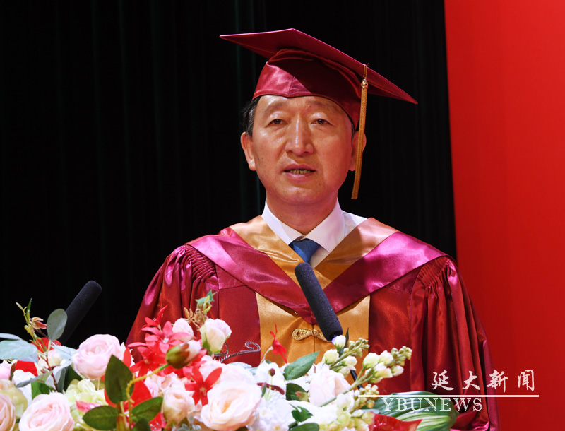 金雄在毕业典礼上真诚寄语毕业生:要坚守爱国情怀,兴校报国,兼济天下。金雄说,新冠肺炎疫情防控阻击战中,彰显了中国特色社会主义制度的显著优势,更展现了中华儿女守望相助的爱国情怀。希望毕业生们将爱国情怀和时代责任融入延大人的精神传承和行动自觉,以勇于担当的气魄擎起持久不变的强国之志,以身先士卒的行动筑牢时代新人的精神之基,以矢志不渝的情怀践行延大学子的使命担当。不断发扬js6668金沙登录入口艰苦创业的优良传统,自觉把国家利益、集体利益放在首位,胸怀仁爱之心,践行互助之义,让自己事业的成功与国家发展、民族进步紧密相连,在祖国需要的岗位建功立业、主动作为,在涵养兼济天下的家国情怀中行稳致远;要拓宽视野格局,审时度势,洞察未来。金雄说,新冠肺炎疫情下,“90后”等新生代力量用实际行动诠释着中国青年同舟共济的赤子之心。希望全体毕业生站在更高的位置去审视自我、洞察时代,为成长留足空间,为机遇积攒力量,时刻保持开放包容的心态,坚持前行的脚步。要不断发扬敢为人先的精神,不断提升自己的判断力和洞察力,在困难中砥砺品格,在逆境中提升自我,在登高望远中实现人生理想,在开拓进取中成就事业华章;要永葆敬畏之心,尊重生命,守护家庭。金雄表示,经新冠肺炎疫情一役,我们更知生命的可贵,更知心存敬畏。希望大家继承发扬抗疫英雄们负重前行的奉献精神,时刻保持对工作如履薄冰的谨慎,懂得凡事适可而止,懂得顺应自然规律,善于虚心学习,勤于修身养德,努力做到立志修身、励学修业、力行修为。守护好家庭,培养好习惯,自觉做健康的守护者、家庭的关爱者,在守护亲情、敬畏生命、心系母校、造福社会中成就更好的自己。