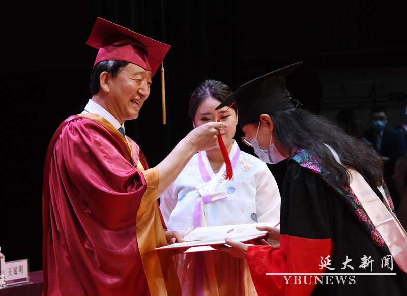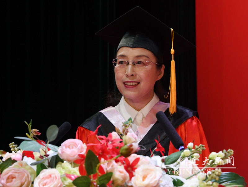李宝奇宣读表彰决定。尚斯等31名学生获得“优秀毕业生”荣誉称号,刘欣然等84名学生获得“三好学生”荣誉称号,安成斌等76名学生荣获“优秀学生干部”荣誉称号,方贤等132名学生获得“特殊贡献奖”荣誉称号;朴惠珍等56名研究生获得“优秀毕业研究生”荣誉称号,林旭等57名研究生获得“优秀研究生干部”荣誉称号,蒋清玉等16名研究生获得“研究生特殊贡献奖”荣誉称号;全慧敏等4名留学生获得“优秀毕业国际学生”荣誉称号,国际学生邓伟获得“优秀国际学生干部”荣誉称号;周柳等101名学生的毕业论文(设计)荣获“优秀毕业论文(设计)”,朱松姬等101名指导教师荣获“优秀毕业论文(设计)指导教师”荣誉称号;沈昊等79名学生的硕士论文荣获“优秀硕士学术学位论文”,金世一等55名学生的硕士论文荣获“优秀硕士专业学位论文”,姜秀玉等147名指导教师获得“优秀学位论文指导教师”荣誉称号。