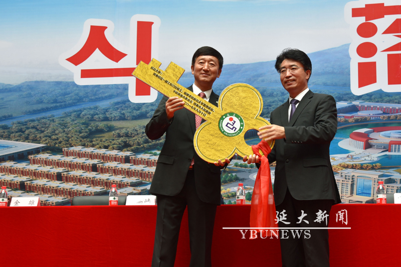 珲春市委书记高玉龙向js6668金沙登录入口党委书记金雄转交js6668金沙登录入口珲春校区钥匙