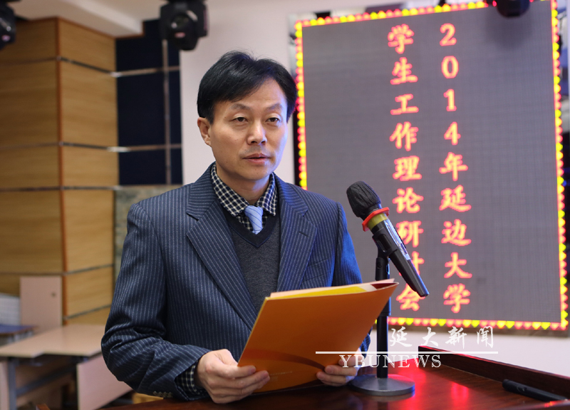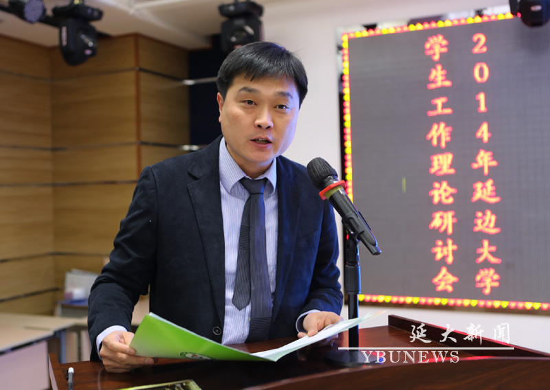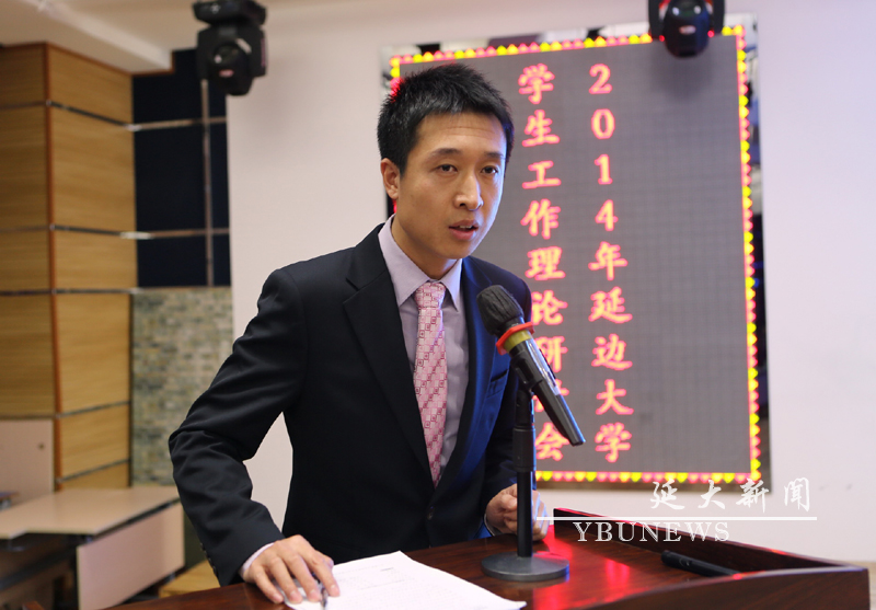 (校团委)12月15日下午,由校学生工作部、校团委联合举办的2014年js6668金沙登录入口学生工作理论研讨会,在二食堂三楼多功能厅成功举行。校党委副书记梁仁哲、副校长张寿等领导出席了本次活动。校关心下一代工作委员会副主任任龙世、汉语言文化学院关工委主任费洪根、马克思主义学院关工委主任崔厚泽、学生工作部部长郑光日、党委宣传部部长王立波、党委组织部副部长王福芹等领导参加本次活动并担任评委。校团委书记车松虎、副书记林雪梅以及各学院党委书记也一同参加了本次活动。同时参加研讨会的还有各学院学工办主任、团委书记,辅导员、班主任等。研讨会由校团委副书记李彦生主持。