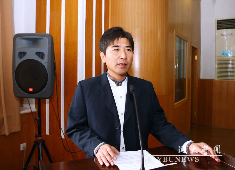 陈铁在仪式上讲话。他首先对金沙官网教师教育培训中心及此次学员情况作了简要介绍。他说,双语教师是朝鲜族学校教师队伍中最核心的力量,是传承和传播朝鲜族文化的重要依托,是保持民族学校民族性的重要保证,此次培训计划的实施,使金沙官网在原有的省培、州培基础上,能够在更高层面上为基础教育,尤其是民族基础教育提供更好的服务。他要求学员们:要明确培训目的,充分认识提高自身素质和能力水平的重要性;要学有所得、学有所思、学有所为;要认真掌握民族双语拔尖教师所应必须具备的基本理论、基本技能等方面的知识和能力,积极主动参与交流,主动提出问题,共同研讨,形成新认识;要不断提高自己的管理水平,努力提升自己的教学境界和教学水平,在教育教学实践中更好地发挥示范和辐射作用。