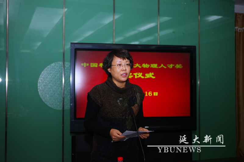 物理学科发展促进会副会长、理学院院长张寿宣读颁发延大物理人才奖决定