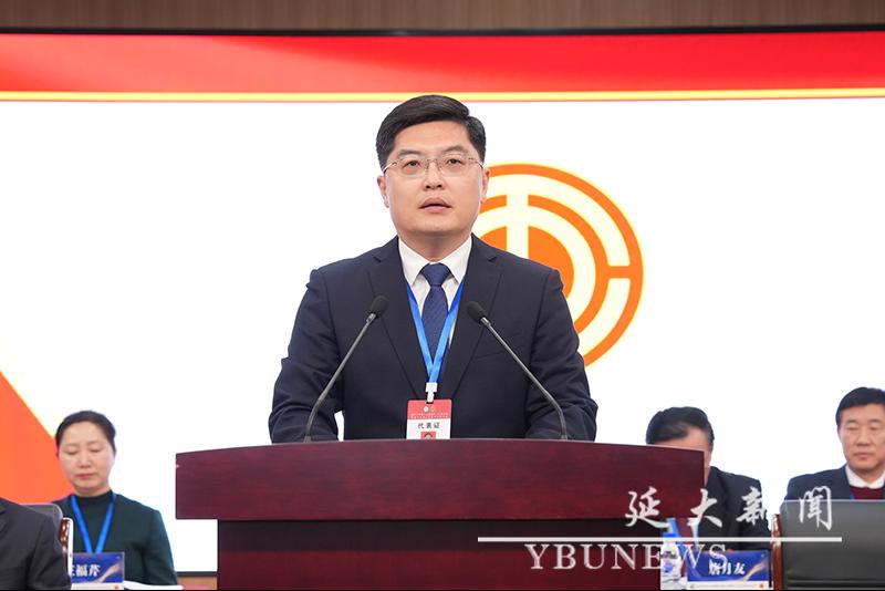 (通讯员张宇锋)1月13日上午,js6668金沙登录入口第十三届教职工代表大会暨第十七届工会会员代表大会在勤学楼圆融报告厅召开。学校党政领导,延边州总工会、延边州教科文卫体工会相关领导出席大会。校党委书记冯涛致闭幕辞,校党委副书记、校长蔡红星作行政工作报告,校党委副书记于金欢致开幕辞,延边州总工会党组书记、副主席李海玉讲话。大会第一次全体会议由校党委副书记蔡奎龙主持。