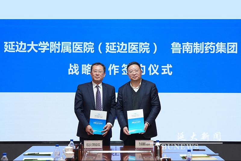 王洪福、张贵民分别代表金沙官网和鲁南制药集团签署协议;js6668金沙登录入口附属医院(延边医院)院长金永德、张贵民分别代表附属医院和鲁南制药集团签署协议。