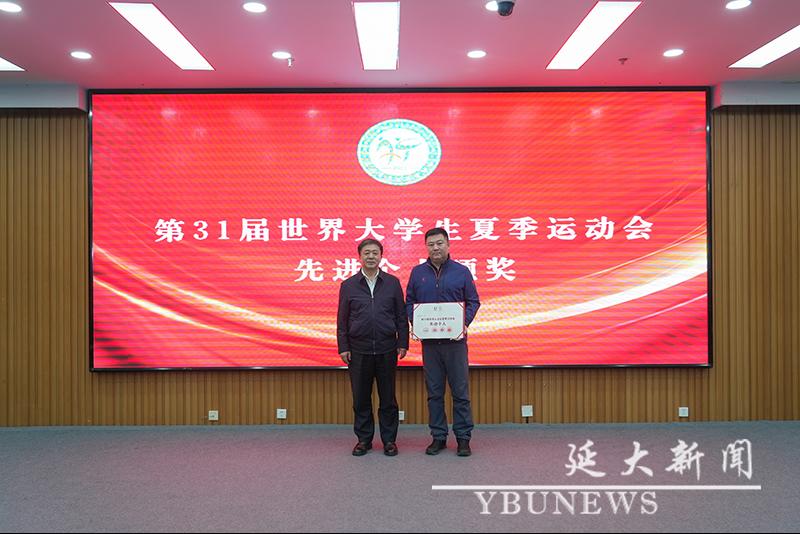 吉林省教育厅副厅长、吉林省委教育工委副书记刘学军为获奖代表颁奖