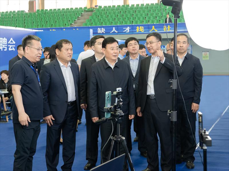 会后,胡家福走进“奋斗有我‘职’在延边”促进高校毕业生留延来延专场招聘会现场。“有多少岗位需求?”、“目前收到多少简历?”胡家福在展台前驻足,仔细察看招聘信息,与用人单位和部分毕业生互动交流,详细了解用人需求、薪资状况以及毕业生求职趋势等情况。胡家福叮嘱用人单位要坚持以事业聚人、以环境留人、以绩效激励人,确保招得来、留得住、干得好。他还勉励毕业生练就过硬本领、扎根延边沃土、矢志拼搏奋斗,为加快延边实现跨越赶超贡献青春力量。