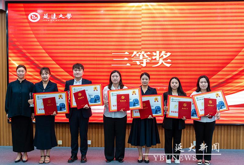 校党委学生工作部部长林雪梅为三等奖获得者颁奖