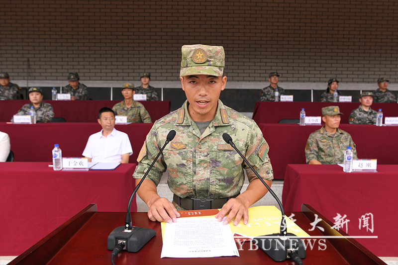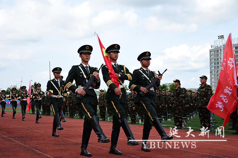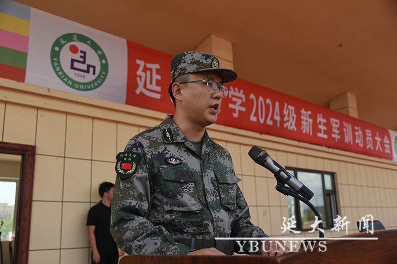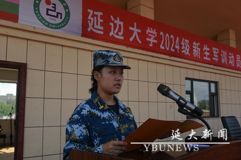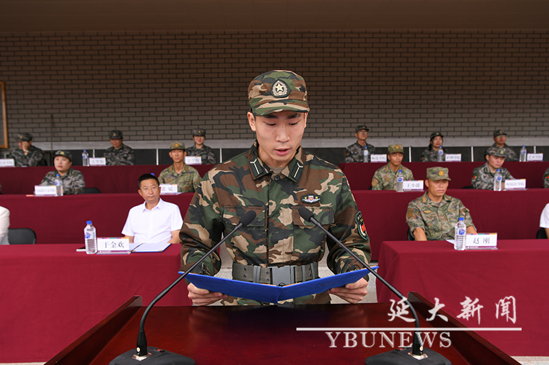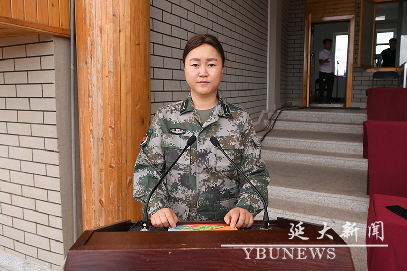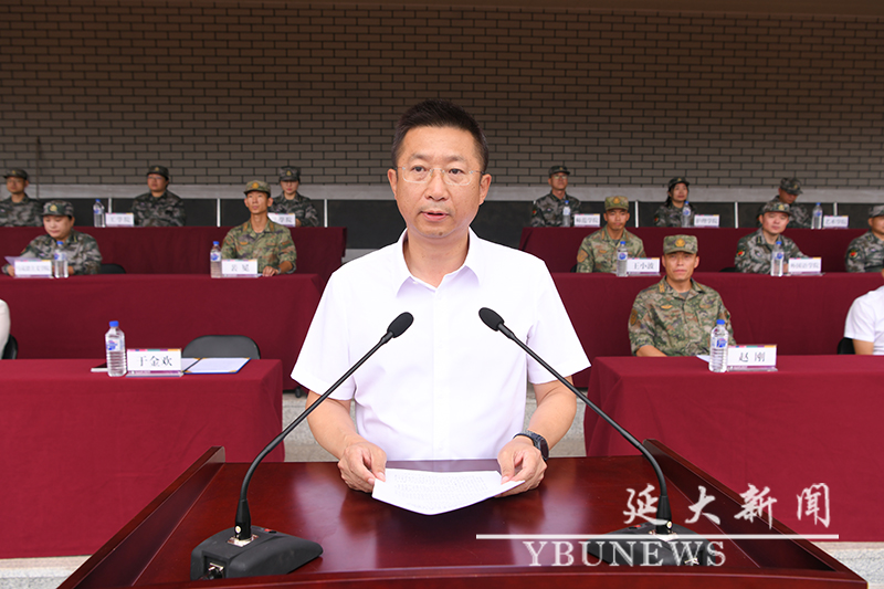 校党委学生工作部·党委武装部部长,学生军训团政治委员林雪梅宣读军训有关要求和纪律,并向带队教师、全体教官和学员提出具体要求。理学院学工办主任刘文斌、经济管理学院学工办主任安俊杰代表全体带队教师发言;驻延吉某部队王小波、经济管理学院崔涵代表全体军训教官发言;体育学院南吉鑫同学、地理与海洋科学学院韩晓旭同学代表参训学生发言。