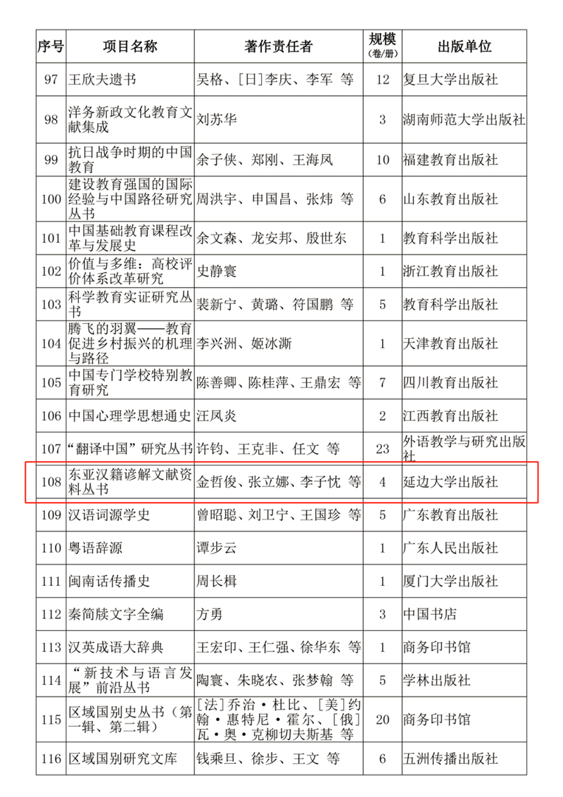 (通讯员 高子愉)近日,国家新闻出版署发布了《“十四五”国家重点出版物出版规划调整情况》的通知,公布了“十四五”时期国家重点图书、音像电子、数字出版增补项目的专项规划,金沙官网三个项目成功入选。其中,郑律成音乐研究中心编辑的《郑律成选集》入选文学艺术出版规划;js6668金沙登录入口出版社申报的《东亚汉籍谚解文献资料丛书》和《铸牢中华民族共同体意识:中华先锋人物故事》分别入选哲学社会科学出版规划和民族文字出版规划。