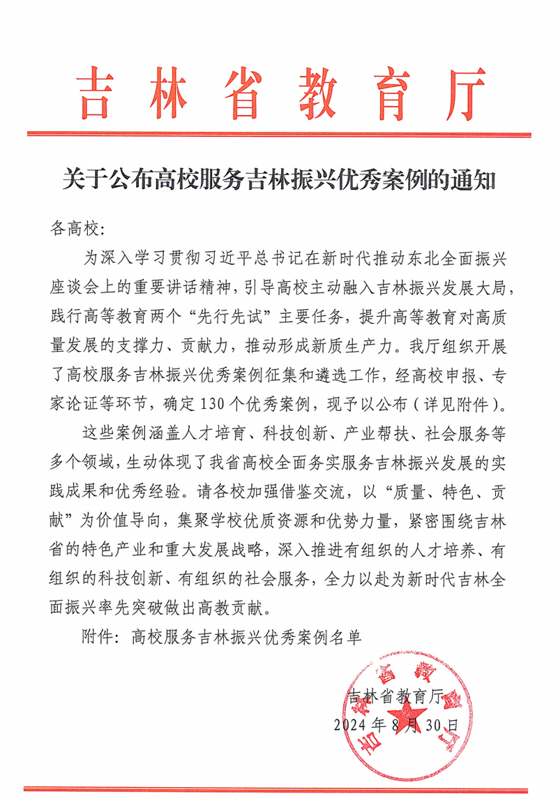 (教务处供稿)近日,吉林省教育厅发布《关于公布高校服务吉林振兴优秀案例的通知》,金沙官网5个案例获评高校服务吉林振兴优秀案例。
