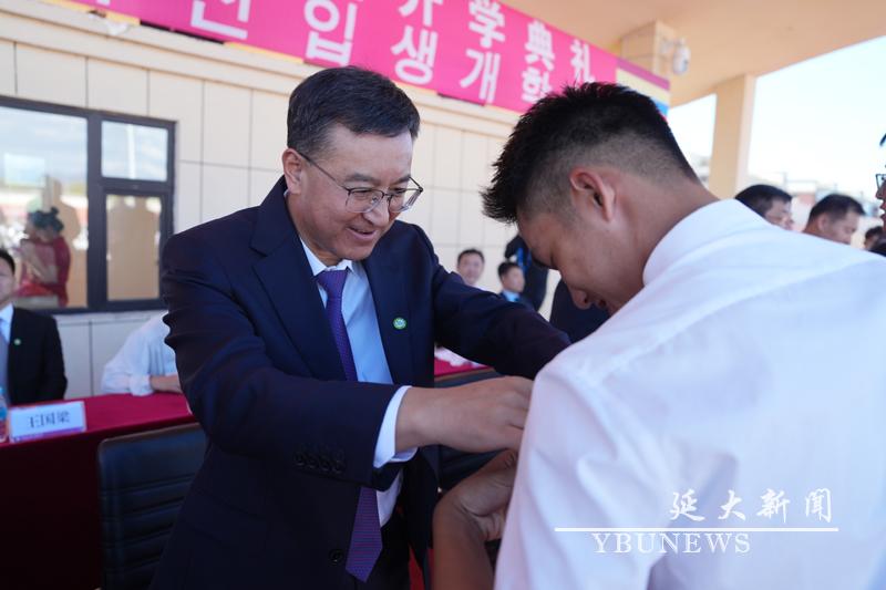 (通讯员高子愉)9月13日,学校在延吉校区和珲春校区举行2024级新生开学典礼。校党委书记冯涛,校党委副书记、校长蔡红星,校党委副书记于金欢、蔡奎龙,副校长张玉红、张学武、朱卫红、刘岩出席典礼。典礼由刘岩主持。