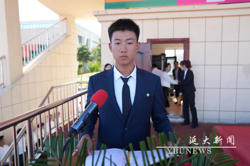 新生代表外国语学院朝鲜语专业本科生李品锋发言