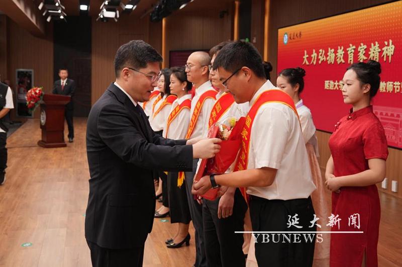 冯涛在大会上讲话,他表示,党中央、国务院始终高度重视教育事业,在刚刚闭幕的全国教育大会上,习近平总书记特别强调,要实施教育家精神铸魂强师行动,加强师德师风建设,提高教师培养培训质量,培养造就新时代高水平教师队伍。回望学校75年的办学历程,每一步发展和飞跃都离不开一代又一代延大人的勠力同心和接续奋斗。当前,学校正处于加快推进高质量转型发展的机遇期、“双一流”建设的攻坚期,学校要坚持以习近平总书记关于教育的重要论述为指导,努力锻造一支师德高尚、业务精湛、结构合理、充满活力的高素质专业化教师队伍,引导广大师生员工以强烈的使命担当加快推进学校“双一流”建设、高质量内涵式发展。