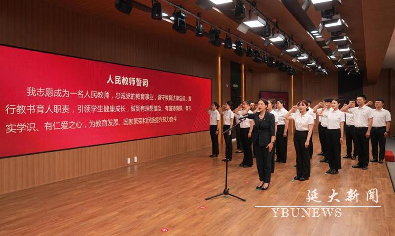 与会人员观看了教师节专题宣传片《老师好》,一句句“老师好”“老师节日快乐”温暖着现场教师的心房;学校专题制作《银发育桃李,逐梦在边疆》的专题视频,向全校银龄教师献礼,退休不褪色、离岗不离教的银龄教师们让全场师生肃然起敬。在校党委常委、宣传部·教师工作部部长、统战部部长陈艳玲的带领下,新入职教师代表们进行宣誓仪式,全体人员重温人民教师誓词,慷慨激昂的誓词展示着js6668金沙登录入口教师不忘初心、矢志育人的执着追求和坚定信念。