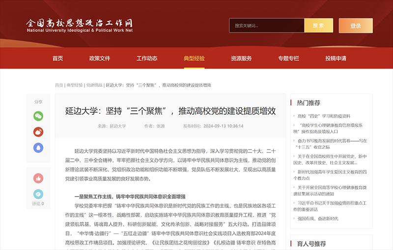 (组织部供稿)9月13日,全国高校思想政治工作网刊发金沙官网党委组织部组织科科长张源署名文章《js6668金沙登录入口:坚持“三个聚焦”,推动高校党的建设提质增效》,报道金沙官网党的建设工作进展。