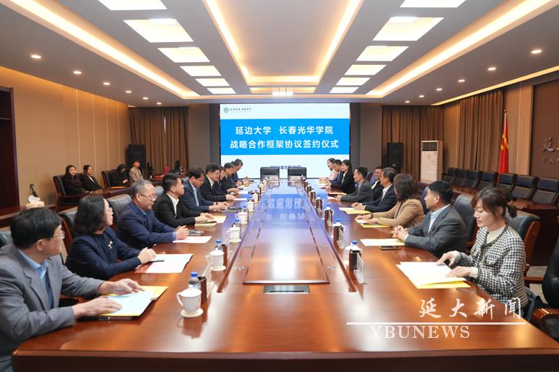 (通讯员高子愉)9月20日下午,金沙官网与长春光华学院在党政办公楼3楼会议室举行战略合作协议签约仪式。校党委副书记、校长蔡红星,副校长张玉红、王洪福;长春光华学院董事长康启鹏,校长李晓光,副校长陈铁、张勇出席仪式。仪式由张玉红主持。