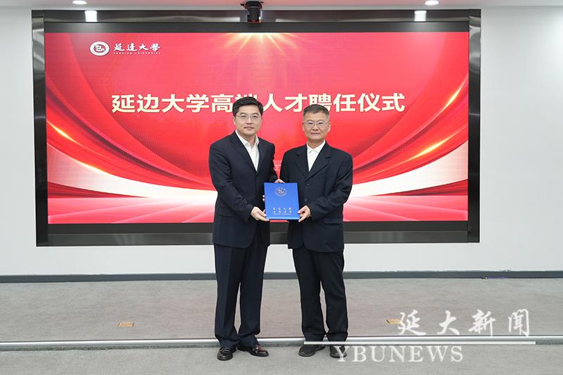 校党委副书记、校长蔡红星为韩洪宪教授颁发聘书