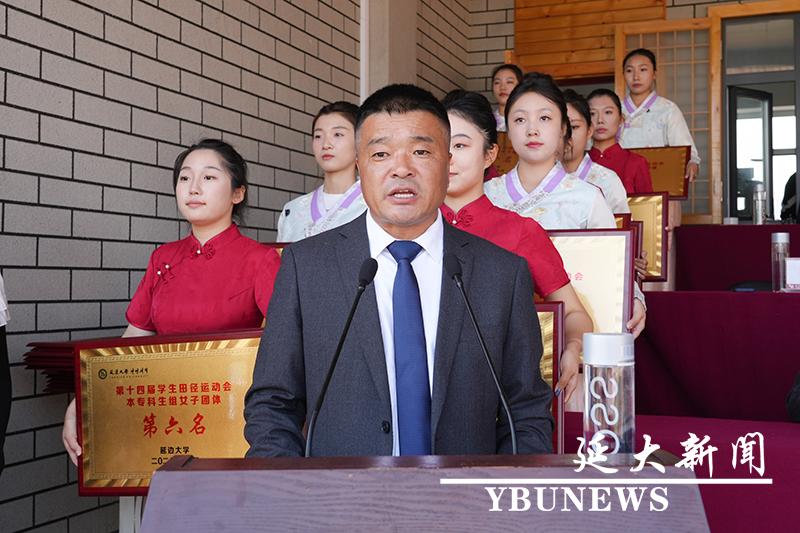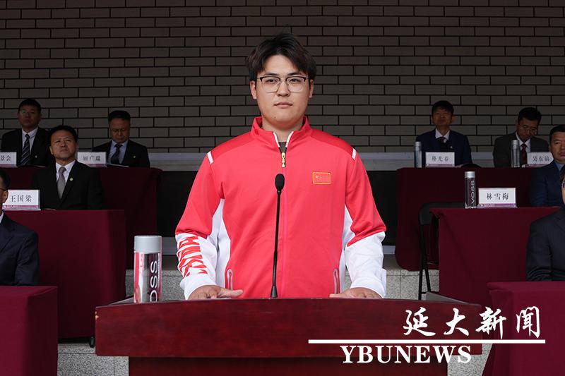 副校长兼校体育运动委员会主任朱卫红致开幕辞。她表示,近年来,学校将体育工作与深入推进“双一流”建设相结合,有力推动了学校体育工作和各项事业高质量发展。她希望,全体运动员要以高昂的斗志、饱满的热情,全身心投入比赛,彰显延大学子的运动激情、蓬勃朝气和活力风采;全体裁判员和工作人员要秉公执裁、热情服务,优质高效完成各项工作。全校师生要进一步增强体育健康意识,合力将本届运动会办成“安全、文明、团结、奋进”的大会,成为展示体育精神、汇聚发展合力、促进各族师生深度交往交流交融的高品质体育盛会。