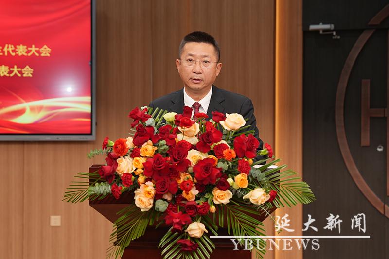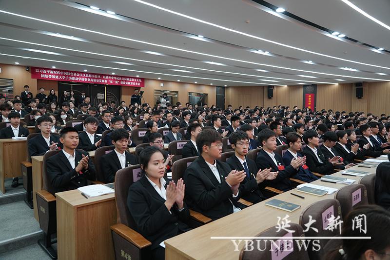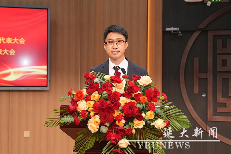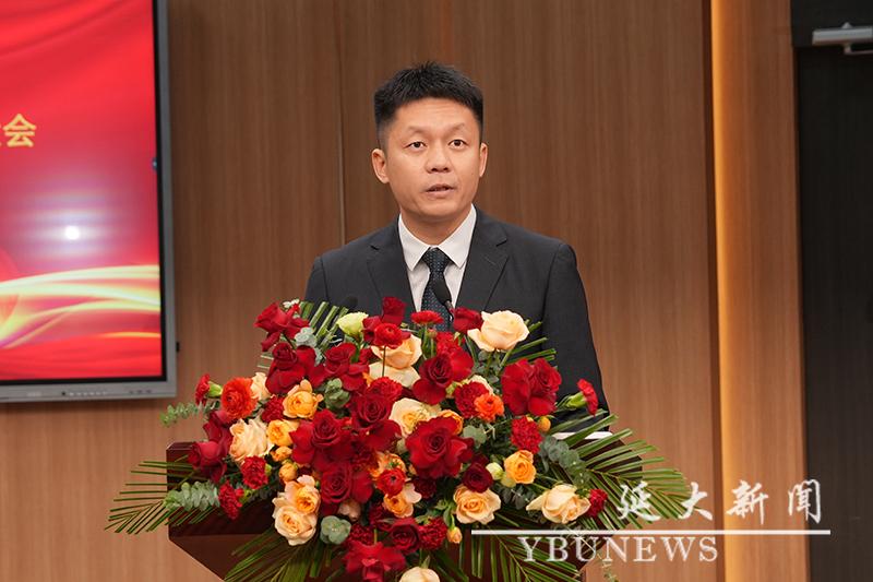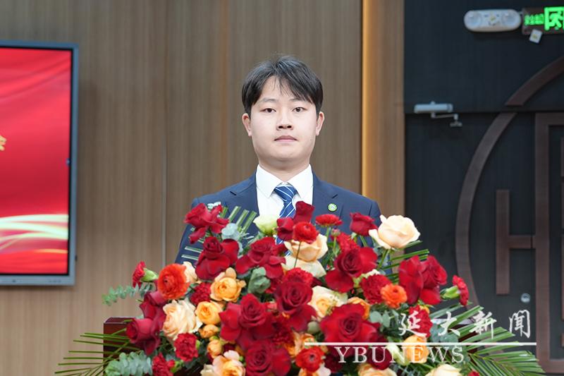 校工会主席黄润浩代表群团组织致辞。他寄语延大青年要坚定听党话、跟党走的政治信念,以铸牢中华民族共同体意识为主线,扎实学好理论知识,积极投身实践锻炼,踔厉奋发、勇毅前行,成为各个领域中的先锋力量,以青春之笔书写波澜壮阔的时代答卷。