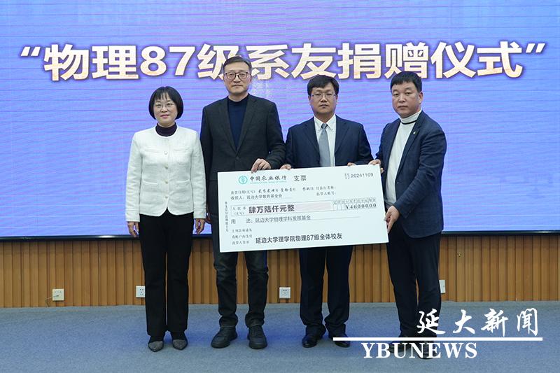 物理系主任朴红光对物理系发展概况、2023—2024年主要成果及物理系建设目标与未来展望进行了介绍;李俊杰作第十二届js6668金沙登录入口物理学科发展促进会工作报告,并向第十三届js6668金沙登录入口物理学科发展促进会会长玄泰山、金文杰颁发聘书;物理系87级校友向学校捐赠4.6万元人民币,用于“js6668金沙登录入口物理学科发展基金”。
