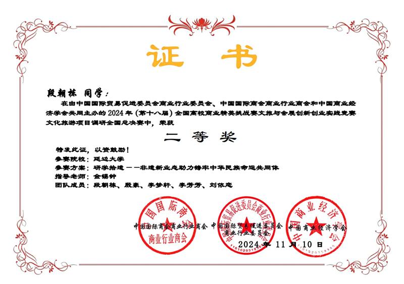 自该项赛事启动以来,学校高度重视,积极组织学生参加培训,通过层层筛选,共选拔出2支队伍参赛。参赛作品《第14届中国——东北亚博览会》《研学拾遗——非遗新业态助力铸牢中华民族命运共同体》分别入围会展项目调研全国总决赛和文化旅游项目调研全国总决赛,并取得国家级二等奖的好成绩,实现了金沙官网在此项赛事中的新突破。
