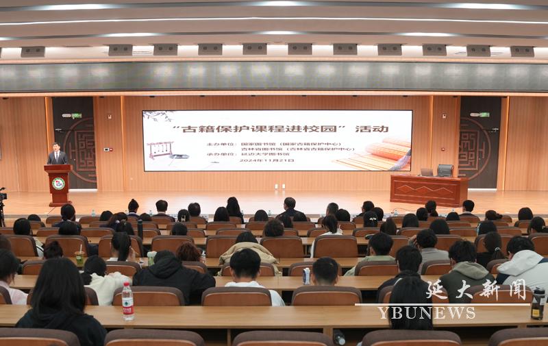 (图书馆供稿)11月21日,由国家图书馆(国家古籍保护中心)、吉林省图书馆(吉林省古籍保护中心)主办,金沙官网图书馆承办的“古籍保护课程进校园”活动在勤学楼圆融报告厅举行。副校长刘岩,国家图书馆古籍馆研究馆员林世田,吉林省图书馆党委书记、副馆长吴爱云,延边州图书馆馆长金赫,全省古籍保存情况普查专家组及金沙官网师生代表等300余人参加活动。