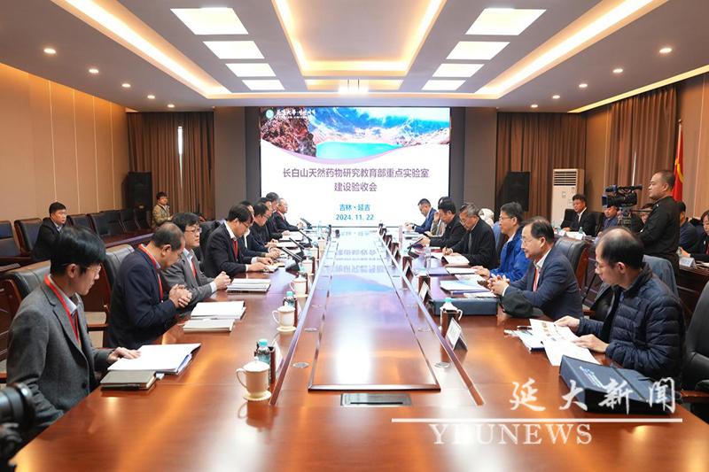 (通讯员 张宇锋)11月22日上午,教育部组织的验收专家组一行在中国工程院院士、江南大学金征宇教授的带领下来金沙官网对长白山天然药物研究教育部重点实验室(以下简称“重点实验室”)建设开展验收工作。验收会议在党政办公楼3楼会议室召开,吉林省教育厅科研与研究生教育处处长闻博;校党委副书记、校长杜锐,副校长王洪福等出席会议,会议由王洪福主持。