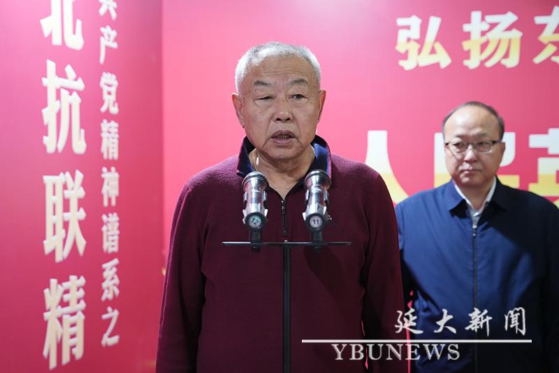 金基德在致辞中表示,杨靖宇将军的事迹是一部用生命谱写的壮丽史诗,深深铭刻在中华民族的历史长河之中,时刻激励着我们奋勇前行。延边这片土地,承载着厚重的抗联历史记忆,举办此次画展,不仅是为了缅怀英雄、铭记历史,更是要以艺术为媒介,让杨靖宇将军的伟大形象和东北抗联精神更加鲜活地呈现出来,通过画展进一步激发广大机关干部强烈的责任担当与服务热忱,激励广大青少年学子们将个人的理想追求融入到国家和民族的事业之中,为实现中华民族伟大复兴而努力奋斗。