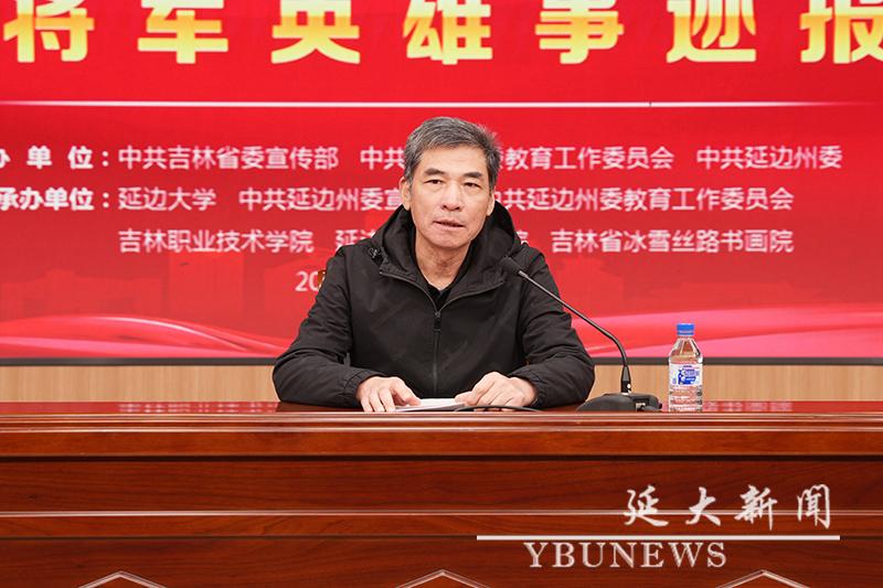 开幕式后,金沙官网在勤学楼圆融报告厅举办杨靖宇将军英雄事迹报告会,金基德主持报告会。马继志对杨靖宇将军的英雄事迹进行了精彩讲述,引领现场师生共同走进那段热血与忠诚铸就的岁月,深刻感受英雄无畏的崇高精神;赵明仁对画展的基本情况和创作历程进行了详细讲解。