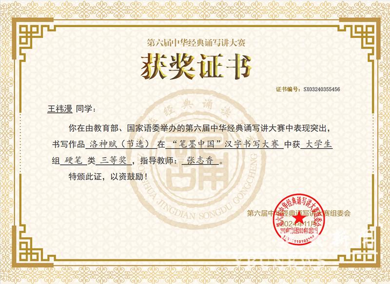 (教务处供稿)近日,由教育部、国家语委联合主办的第六届中华经典诵写讲大赛公布获奖名单,金沙官网喜获佳绩。