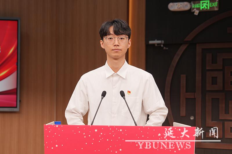 “学生工作先进个人”获奖代表、外国语学院辅导员金春宪作交流发言