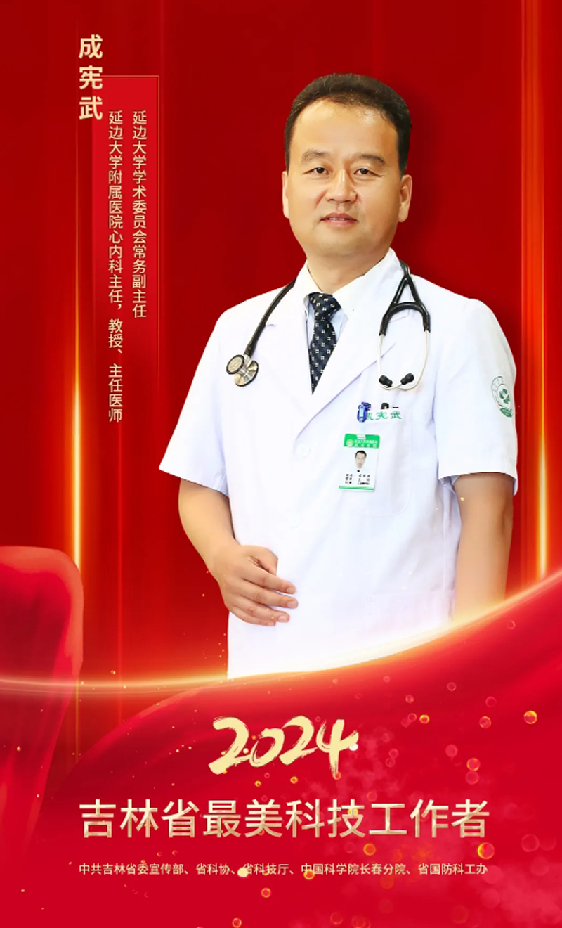 延伸阅读:成宪武,男,朝鲜族,1966年12月生,中共党员,博士生导师,享受国务院政府特殊津贴、国家级高端人才、吉林省A类人才,2020年全国学术影响力百强学者(心血管领域排第25位),省科技厅“慢性应激与心血管病”重点实验室负责人,曾荣获“中国侨界贡献二等奖”,带领团队获得吉林省第三批“高校黄大年式教学团队”称号,现担任js6668金沙登录入口医学院教授、附属医院心血管内科兼高血压科主任。2024年荣获“全国模范教师”“全国卫生健康系统先进工作者”荣誉称号,带领团队获得“长白英才杰出人才团队”荣誉称号。