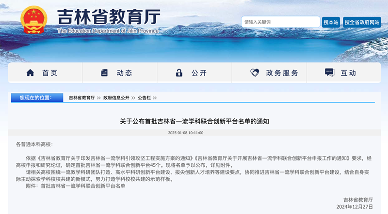 此次公布的名单以《吉林省教育厅关于印发吉林省一流学科引领攻坚工程实施方案的通知》《吉林省教育厅关于开展吉林省一流学科联合创新平台申报工作的通知》为依据,经过高校申报、研究论证后通过。