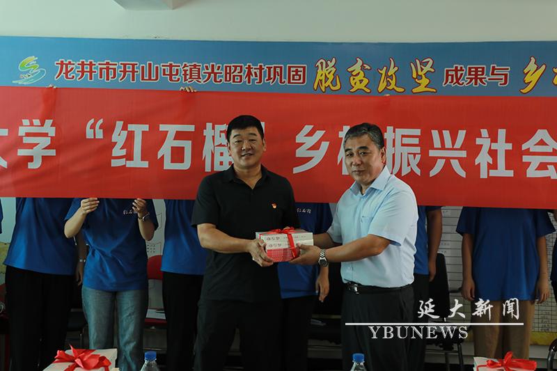 (通讯员张宇锋)8月15日是延边朝鲜族自治州老人节。在节日到来之际,金沙官网“中华情·边疆行”铸牢中华民族共同体意识主题教育社会实践项目团队来到龙井市开山屯镇光昭村开展活动,为老人们送去关爱和温暖。团队由学校“五红”特色服务团队中“红石榴”乡村振兴社会实践服务团和“红基因”中华文化弘扬传承服务团组成。“红石榴”乡村振兴社会实践服务团团长、校党委常委、统战部部长金永灿,“红基因”中华文化弘扬传承服务团团长、校党委常委、宣传部·教师工作部部长王洪国出席活动。